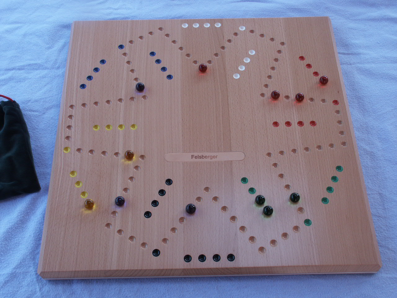Sieger des 'Suisse Toy Award 2007'. - Das 'Felsberger DOG' kommt quadratisch daher und ist auf beiden Seiten (4/6) bespielbar. Die Spielfläche ist aus Nussbaumholz.